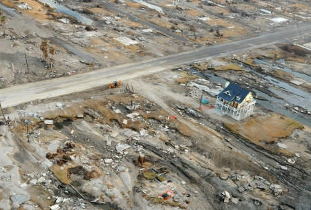 One of the few homes left standing after Ike's storm surge swept across the Texas community of Gilchrest. Click on image for a larger version. Credit: FEMA.