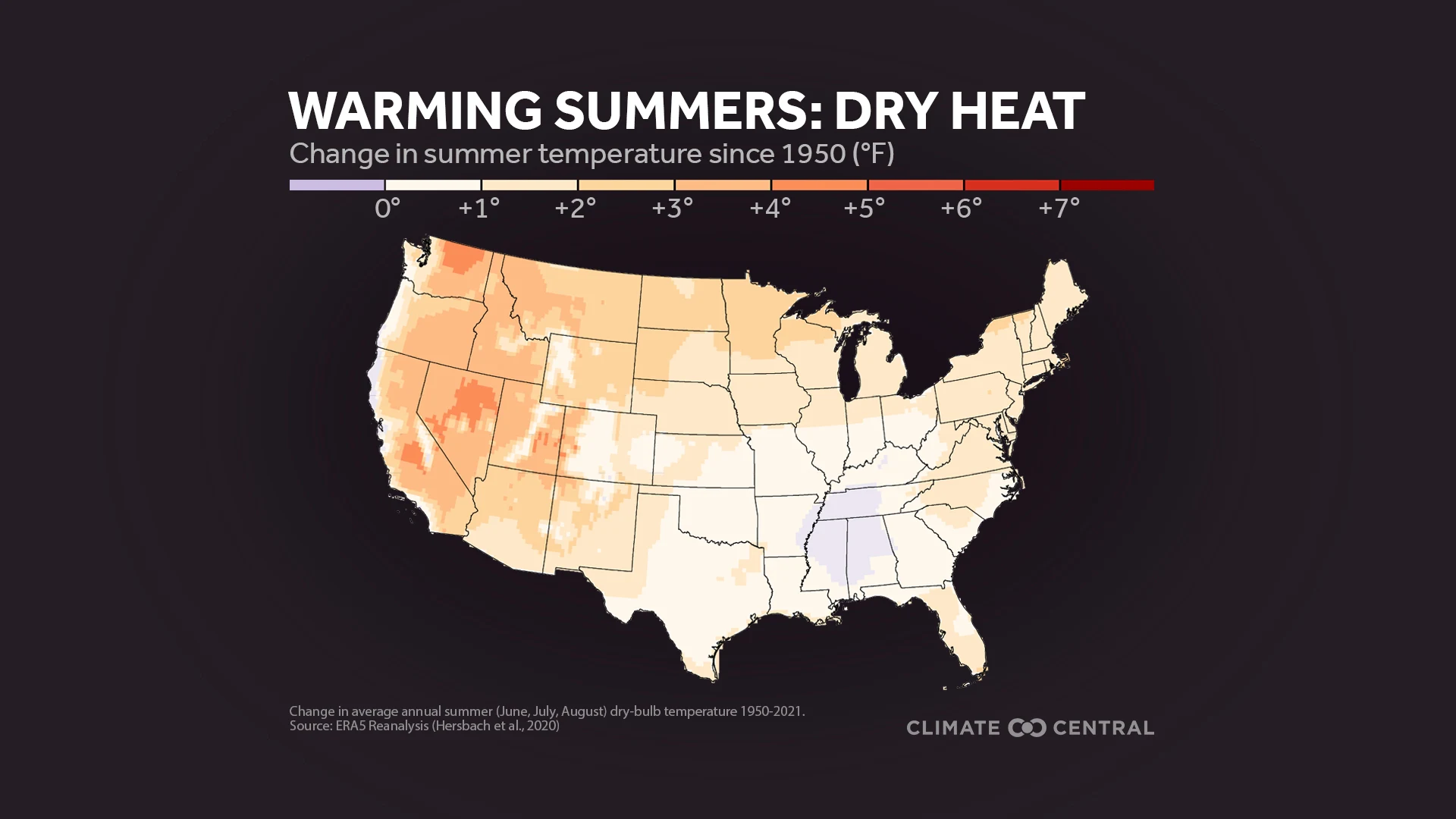 New analysis from Climate Central shows how summer equivalent temperatures have changed across the contiguous U.S. since 1950.