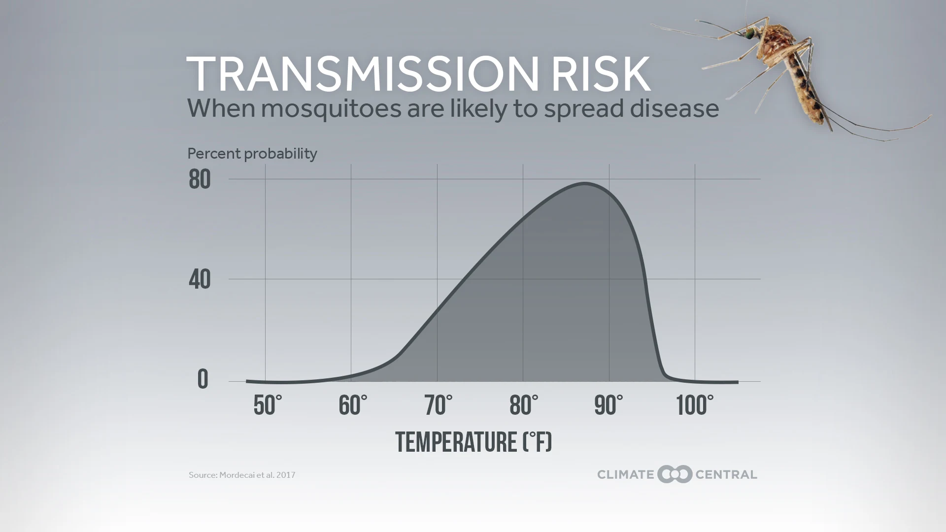 The number of days each year that are suitable for disease transmission by mosquitoes is rising in much of the U.S., as temperatures climb with climate change. This can increase the risk of mosquito-borne diseases such as Zika and West Nile. Following research from Stanford University, Climate Central analyzed the number of days in the spring, summer, and fall each year with an average temperature between 61°F and 93°F, which is the range for transmission of diseases spread by Aedes or Culex type mosquitoes. Of the 244 cities analyzed, 94 percent are seeing an increase in the number of these “disease danger days.”