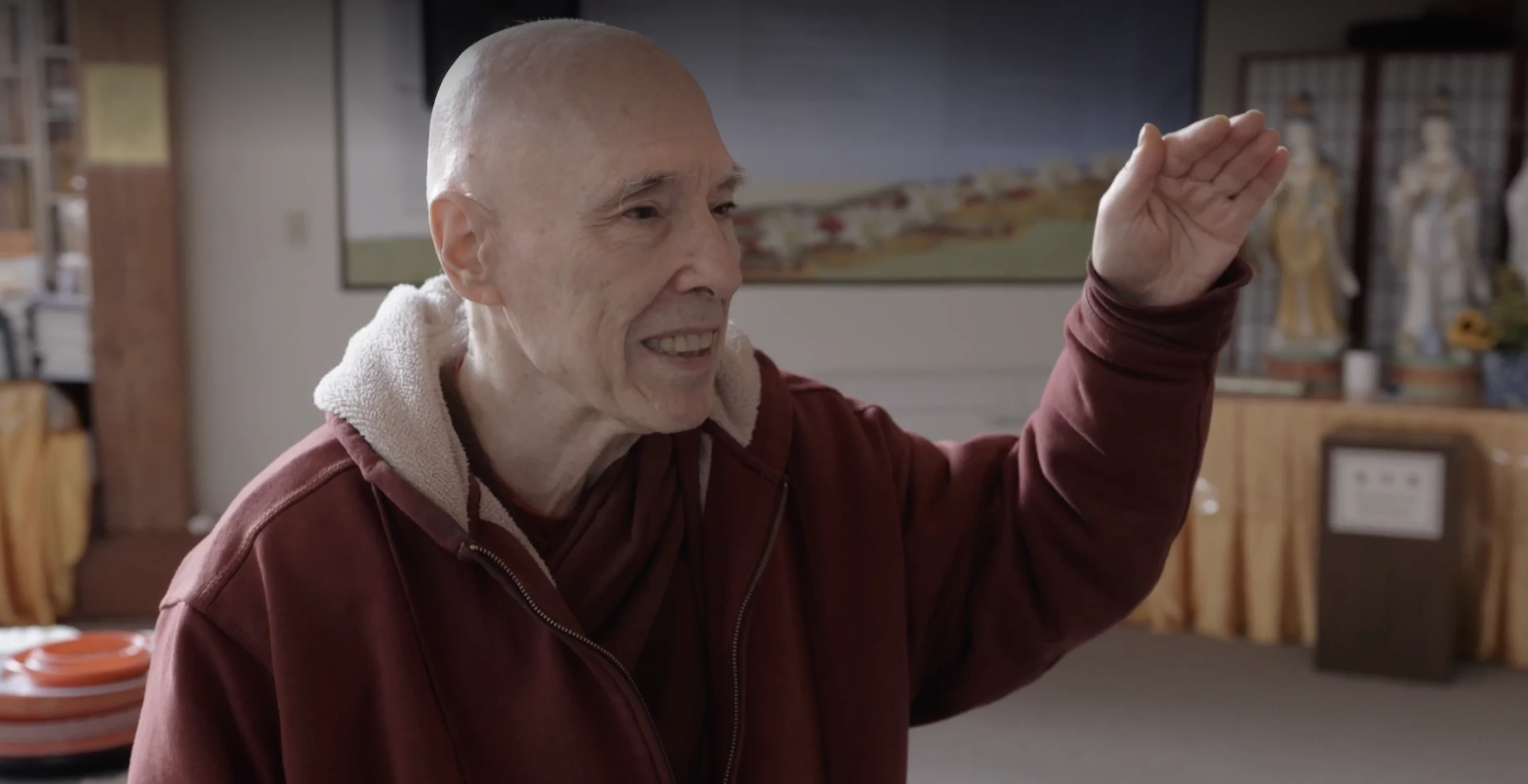 At the Chuang Yen Monastery, American Theravada monk Bhikkhu Bodhi explains the Buddhist philosophy of causality and how that connects to human-induced climate change. Image Credit: Andrew Shafer/ Newsy