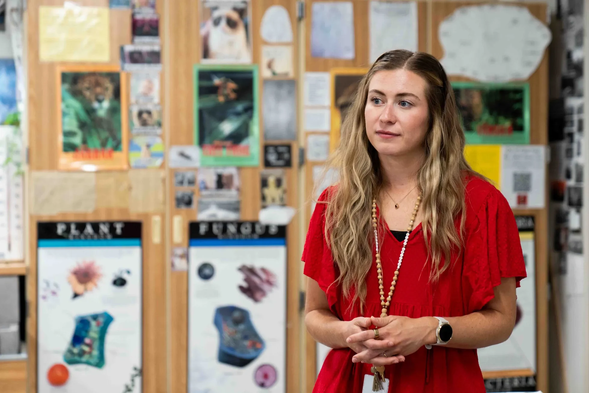 Molly Johnson stands inside Kelley Smith's classroom at Coconino High School in Flagstaff on Sept. 24, 2024. Diannie Chavez/The Republic