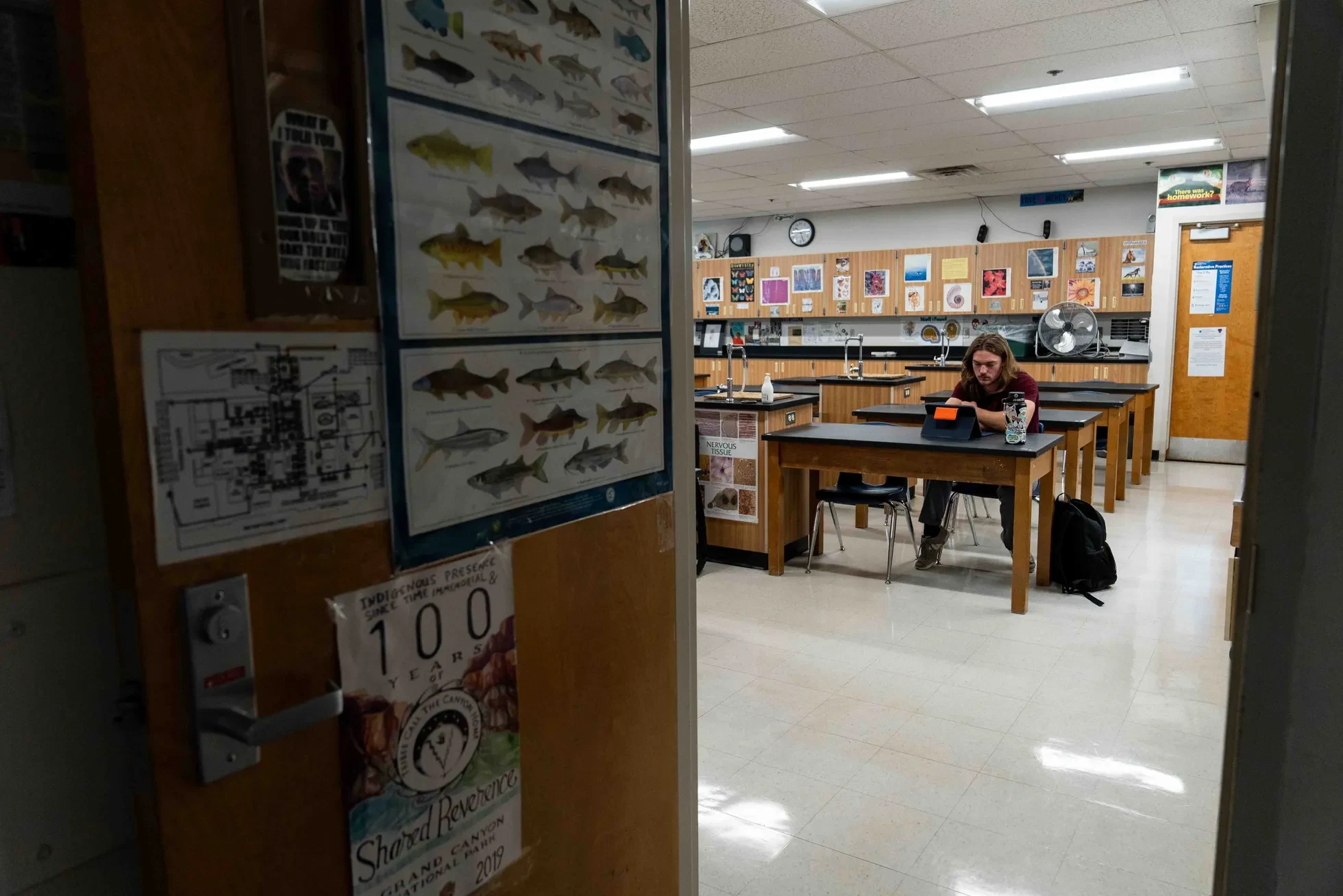 On hot days at Flagstaff High School, Elli d’Oronzio’s students ask if they can sit in the hallway to work on their assignments. Her windowless classroom in the aging building’s basement, nicknamed “the dungeon,” can be 10 degrees warmer than the hallway, which gets more airflow. On a recent afternoon, the room’s thermometer read 95 degrees.