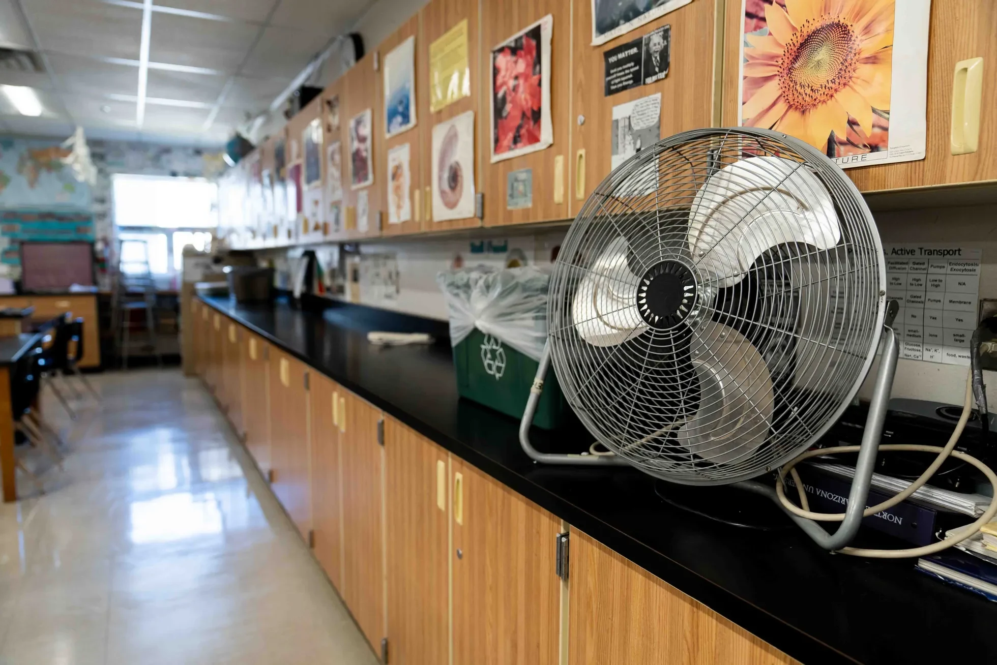 Molly Johnson, who teaches exercise science as well as earth and space science at Coconino High, is grateful for the fans in her classroom staving off the worst health consequences of heat. But she says they are an imperfect solution not only because they don’t cool enough, but because — as with Garcia’s friend’s papers blowing away in d’Oronzio’s classroom at Flagstaff High — these temporary interventions can undermine the primary purpose of the educational system.
