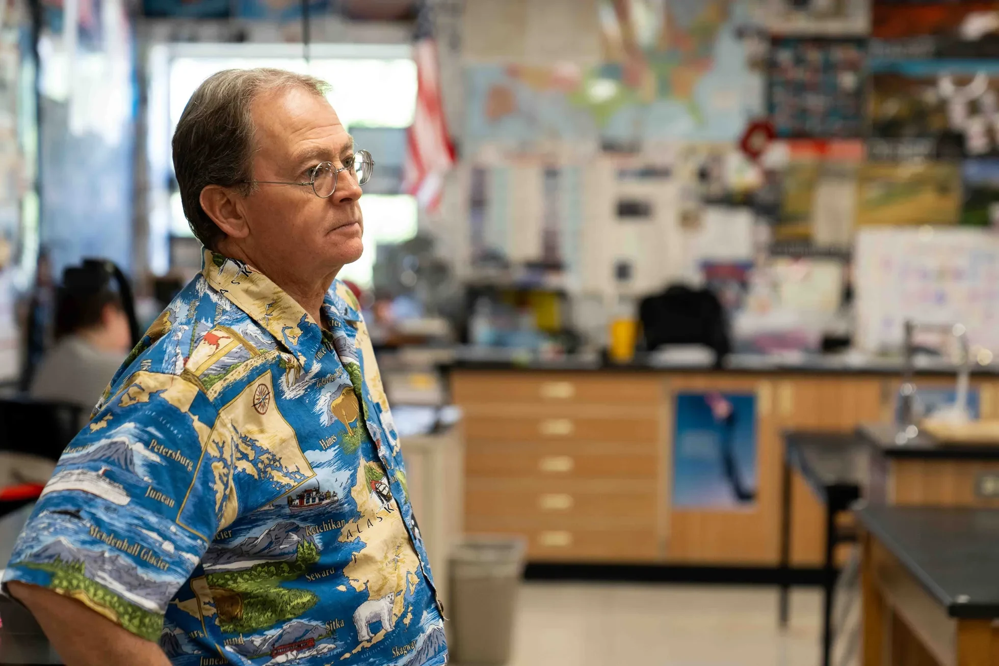 Kelley Smith stands inside his classroom at Coconino High School in Flagstaff on Sept. 24, 2024. Diannie Chavez/The Republic