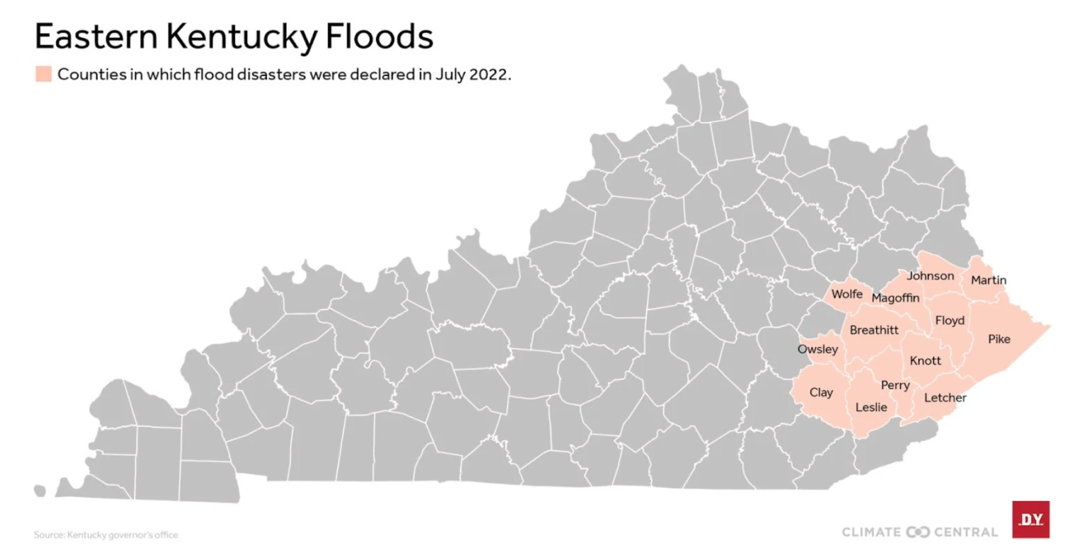 Kentucky is a regular victim of flooding. During the past century, more than 100 people have died in storms across the state, including at least 44 two summers ago. Heat-trapping pollution is driving up rainfall rates and flood risks.