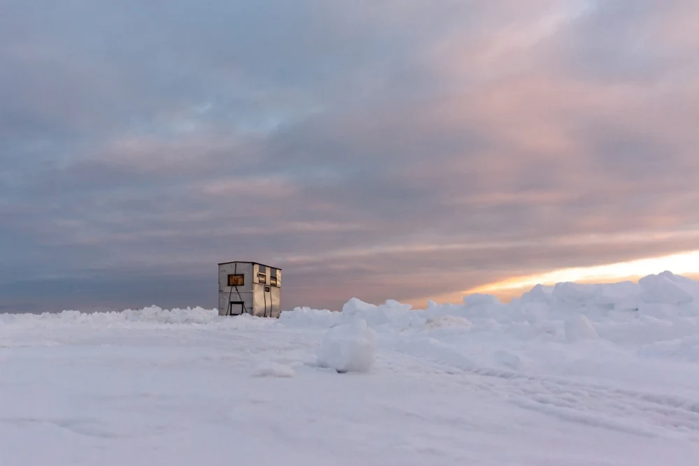 Ice fishing house on Fishhook Lake in Park Rapids, Minnesota.