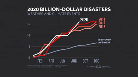 2020 is the sixth year in a row in which the United States has been impacted by 10 or more billion-dollar disaster events. Climate change is amplifying extreme weather events, while urban growth in dangerous areas and other factors are exacerbating their impacts.