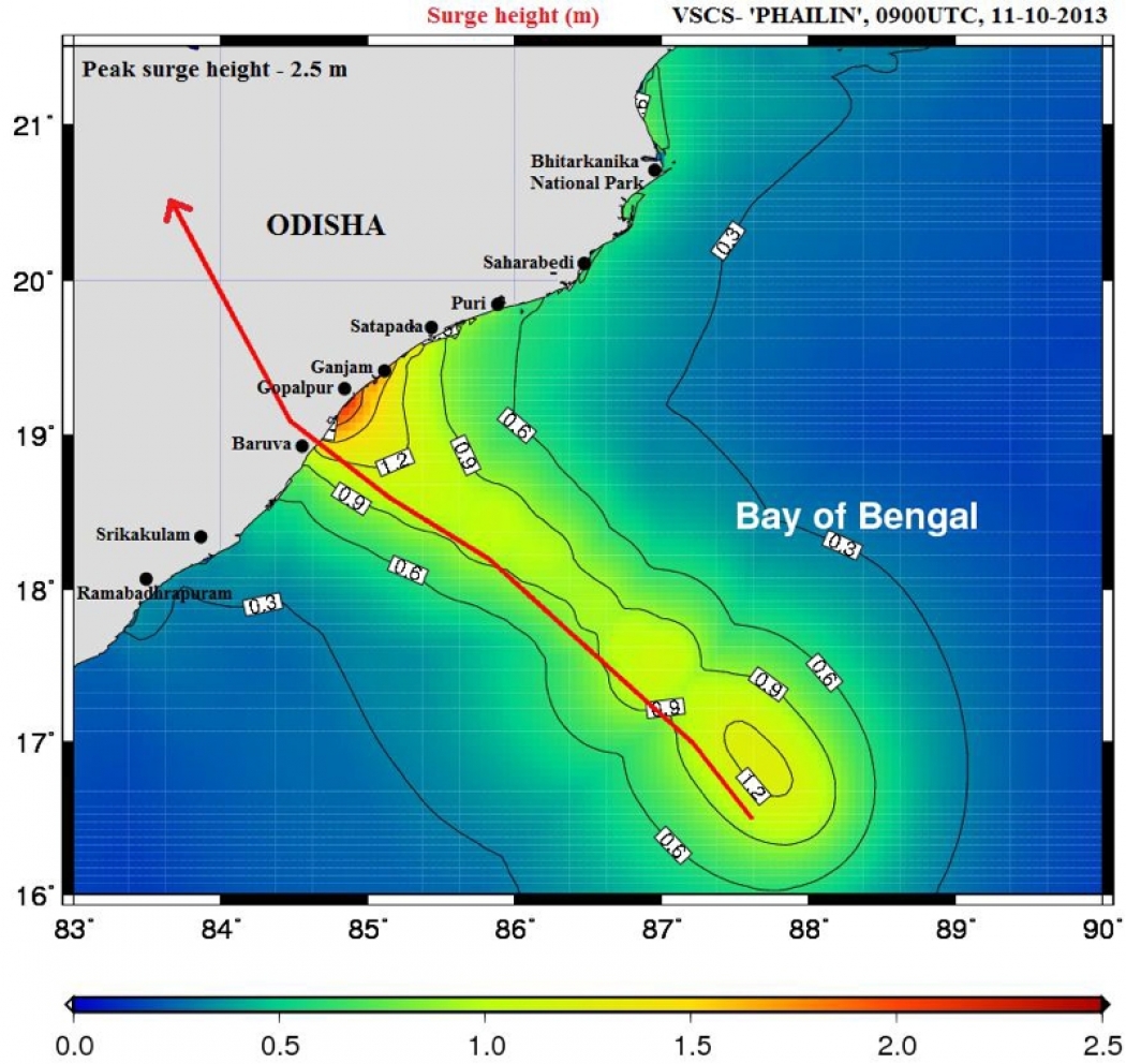 Tropical Cyclone Phailin may be comparable in size and strength to 1999’s Odisha Cyclone, if not a bit stronger than that storm, which also struck India’s east coast. That storm hit the coast near the city of Bhubaneswar as a Category 4 storm with 155 mph sustained winds, driving a surge nearly 20 feet high onto the coast.