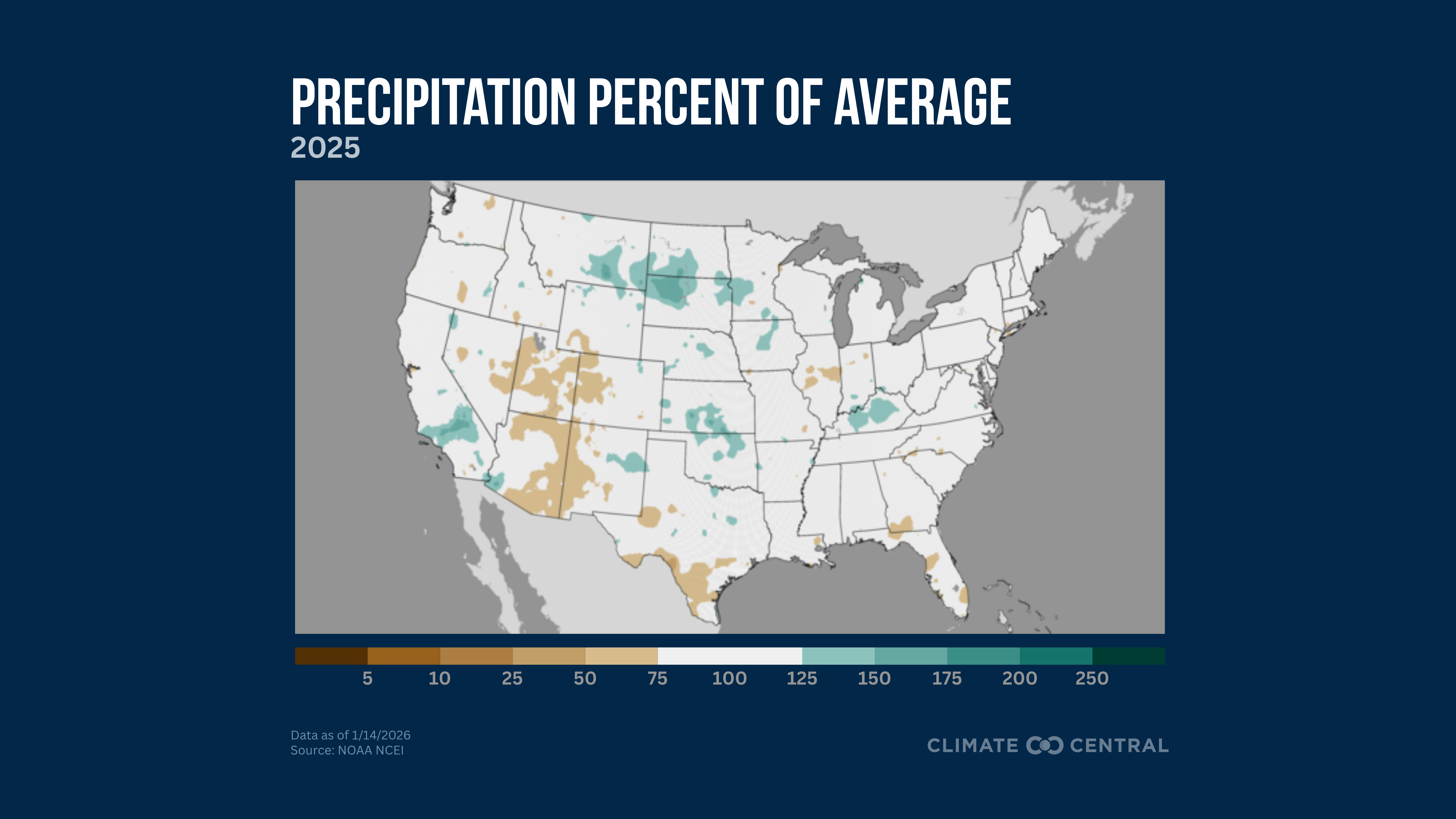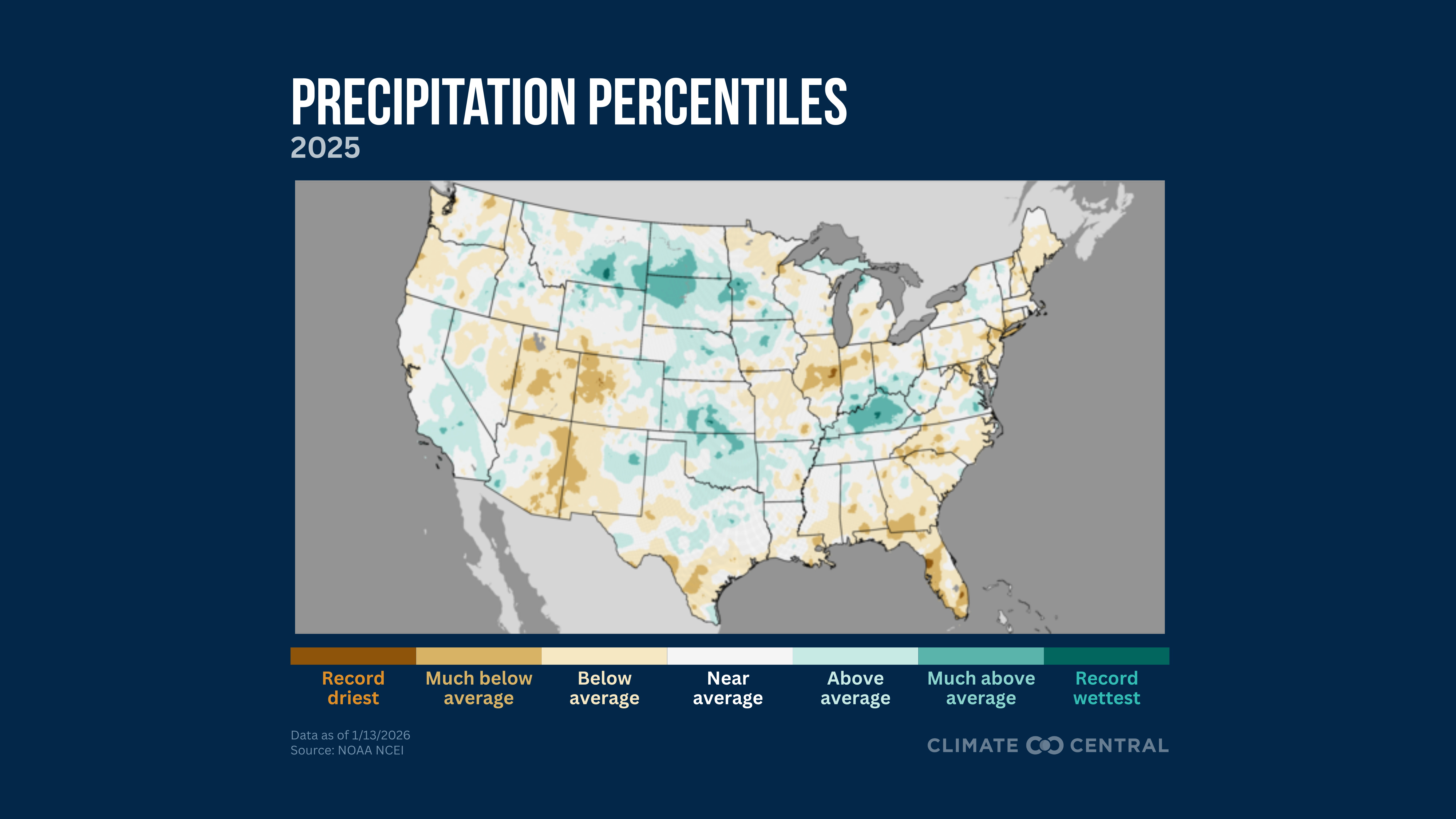 2025 was the 40th-driest (92nd-wettest) year on record for the contiguous U.S.