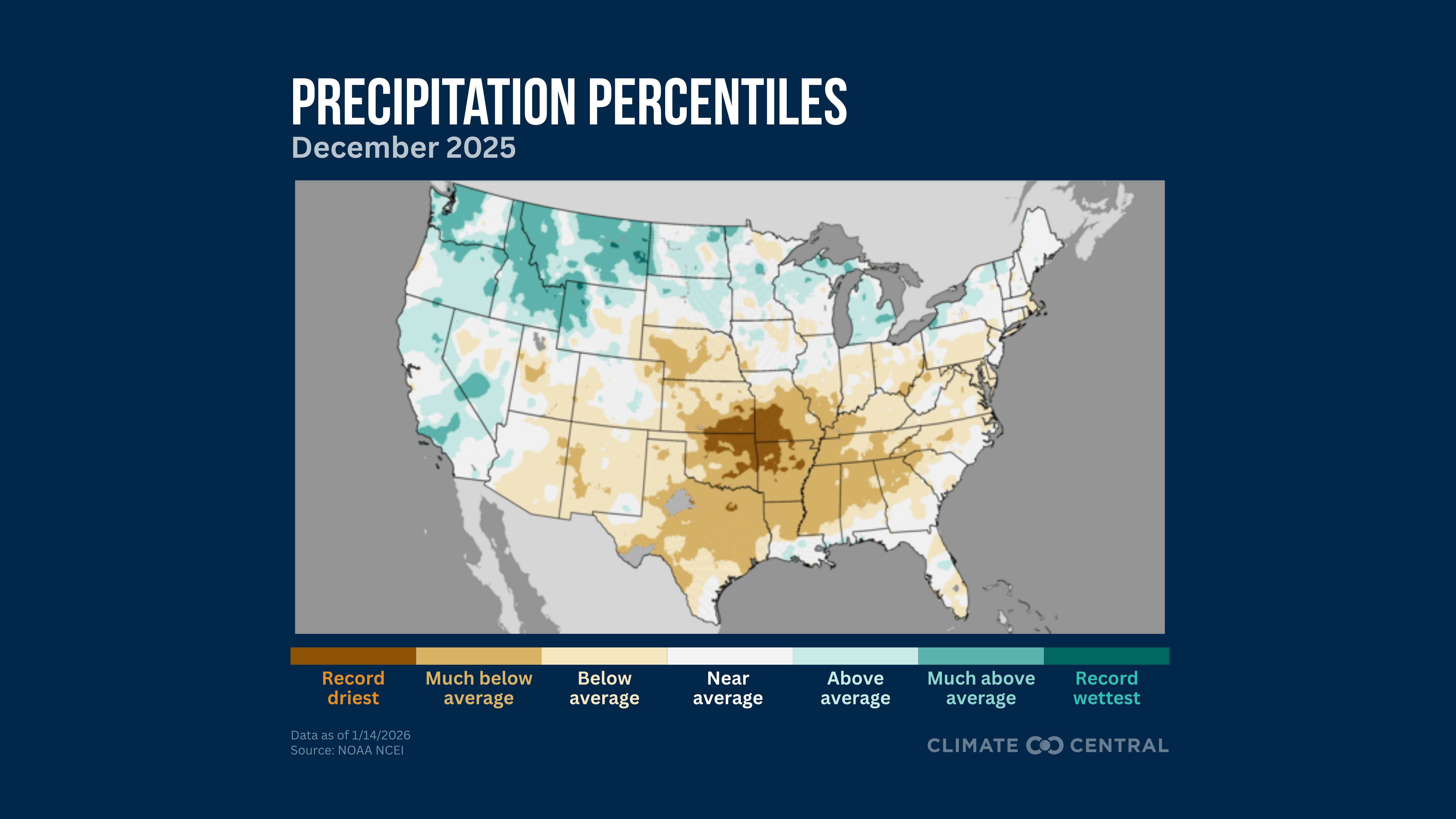 December 2025 ranked as the 37th-driest (95th-wettest) December on record for the contiguous U.S.