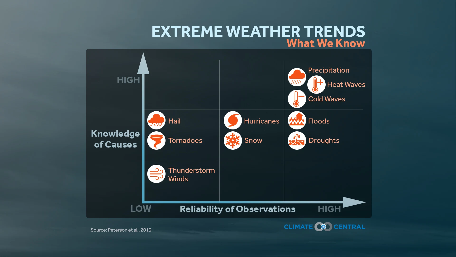What scientists do know is that the number of days with at least one tornado happening in the continental U.S. is decreasing — but that we’re seeing more tornadoes per day when they do happen. Further complicating matters is that tornado detection has improved over the past few decades. Harold Brooks, of NOAA’s National Severe Storm Laboratory, emphasizes that “climate models indicate an increase in this variability in the future.”