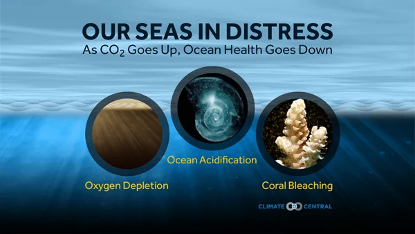 June 8th is World Oceans Day, a day to raise awareness of the ocean’s importance to the planet. 93% of the excess heat absorbed by the climate system goes into our oceans, creating major consequences to the planet. While more extreme storms and rising sea levels are some of the impacts of warmer oceans, rising CO2 levels and the resulting warmer oceans are impacting ocean health itself. The most well-known effects are coral bleaching and ocean acidification, but an emerging issue is the decreasing oxygen levels in the warming waters to the planet.