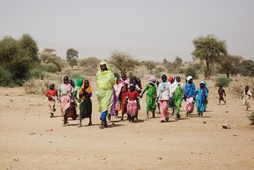 A Sudanese woman and children are pictured in Fanga Suk in East Jebel Marra, South Darfur.