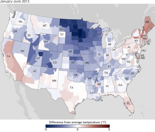 NOAA is responsible for monitoring the U.S. and global climate system, producing a steady stream of reports to the nation. This graphic shows the January-June temperatures compared to average in the lower 48 states.