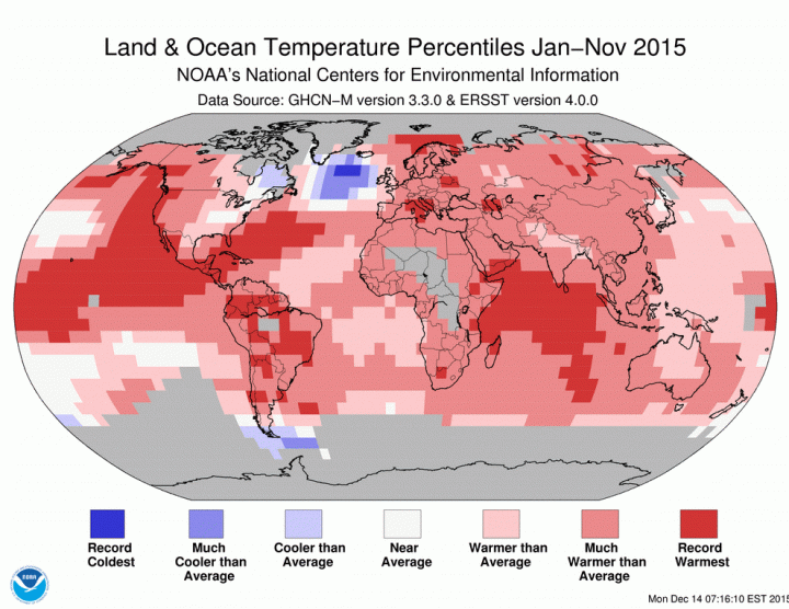 “December 2015 would have to be 0.43°F colder than the coldest December on record to not break the record,” Jake Crouch, a climate scientist at NOAA, said. “That’s not going to happen in December 2015.”