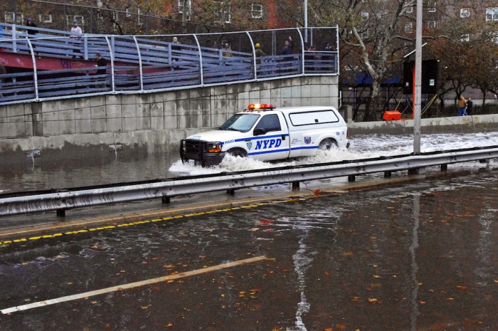 The FDR Drive flooded after Hurricane Sandy on October 30, 2012.