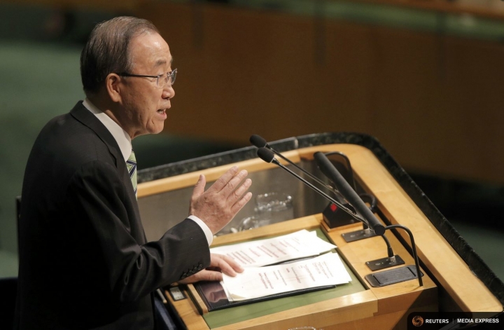 Secretary General Ban Ki-moon delivering remarks on Friday.