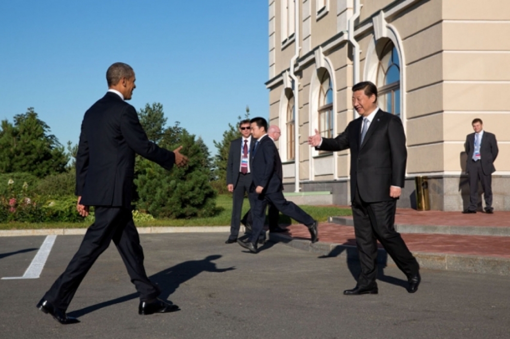 President Xi Jinping of China greets President Barack Obama before their bilateral meeting at the G20 Summit at the Palace of Congresses in Saint Petersburg, Russia, Sept. 6, 2013.