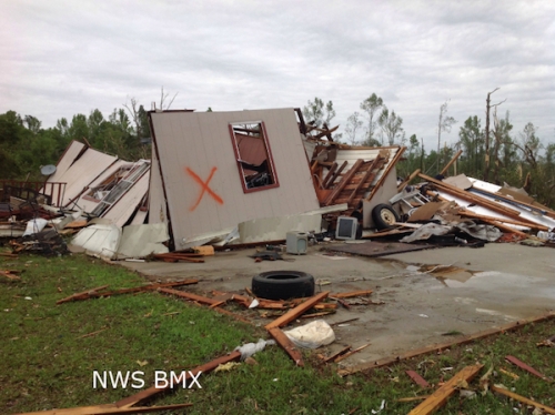 A manufactured home was destroyed by an EF3 tornado that touched down in Lee County, Ala., on April 29, 2014, during one of the few notable outbreaks in a below-average tornado season.