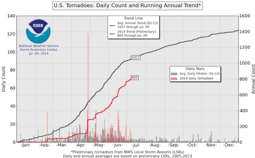 Even with that possibility, 2014 is still some 300 tornadoes below normal.