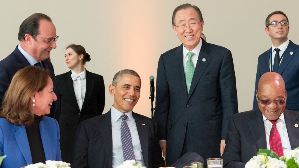 Pres. Obama with leaders from France, South Africa and the United Nations in Paris for a key round of climate meetings last year.