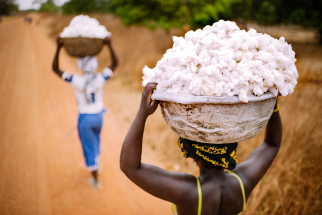 Women carry cotton during the harvest in Burkina Faso.